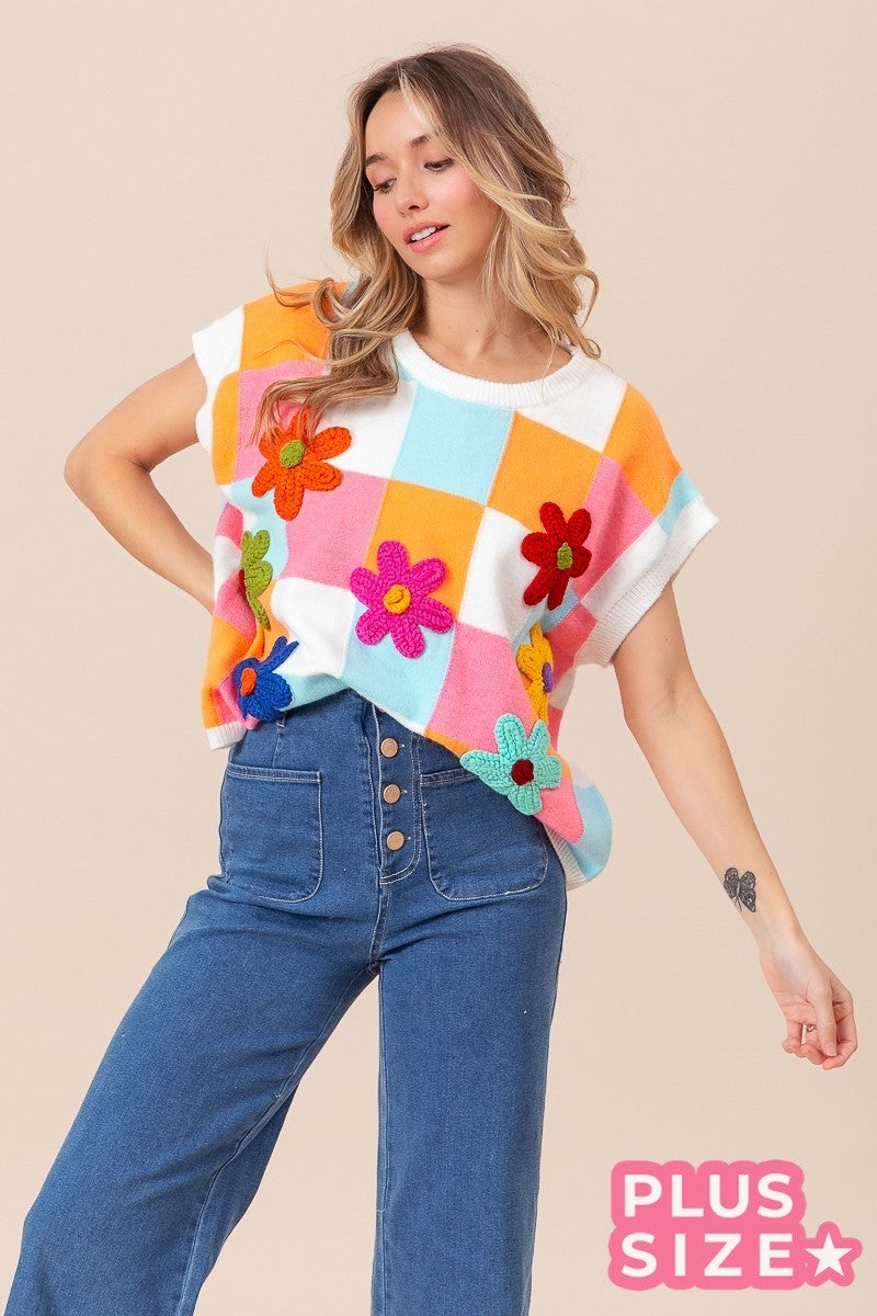 Daisy Patch Colorblock Knit Top (1X-3X)